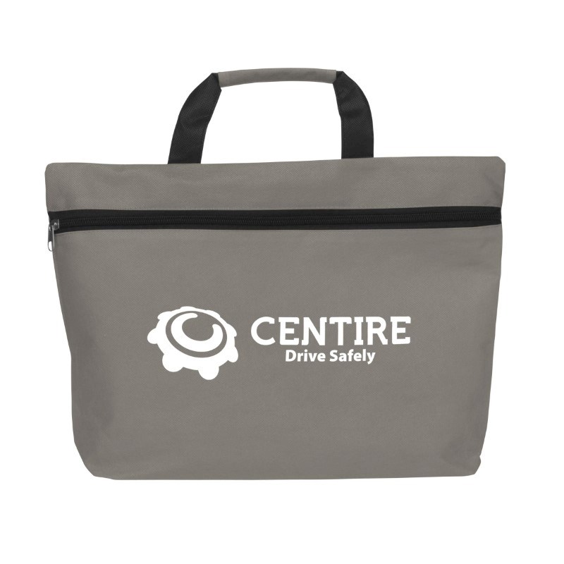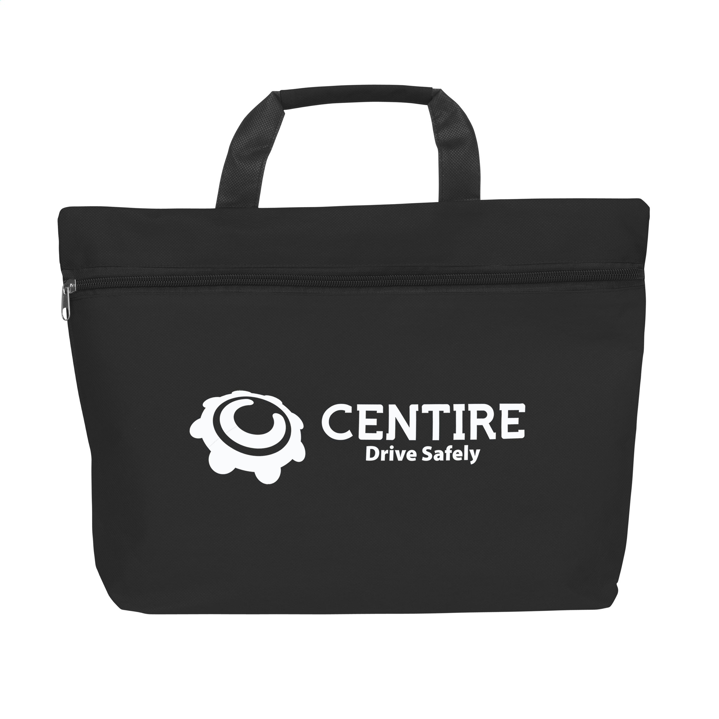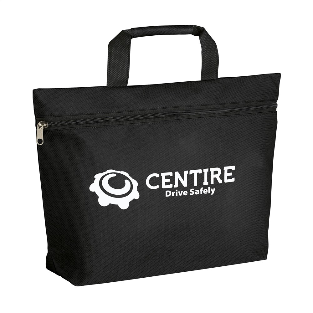 Praktische nonwoven (80 g/m²) documententas. Met rits, verstevigde handgreep met kleuraccent en breed uitlopende onderzijde. Superlicht en sterk.