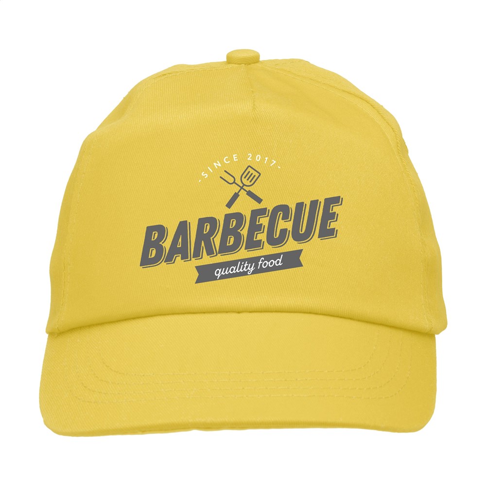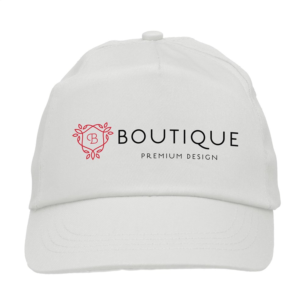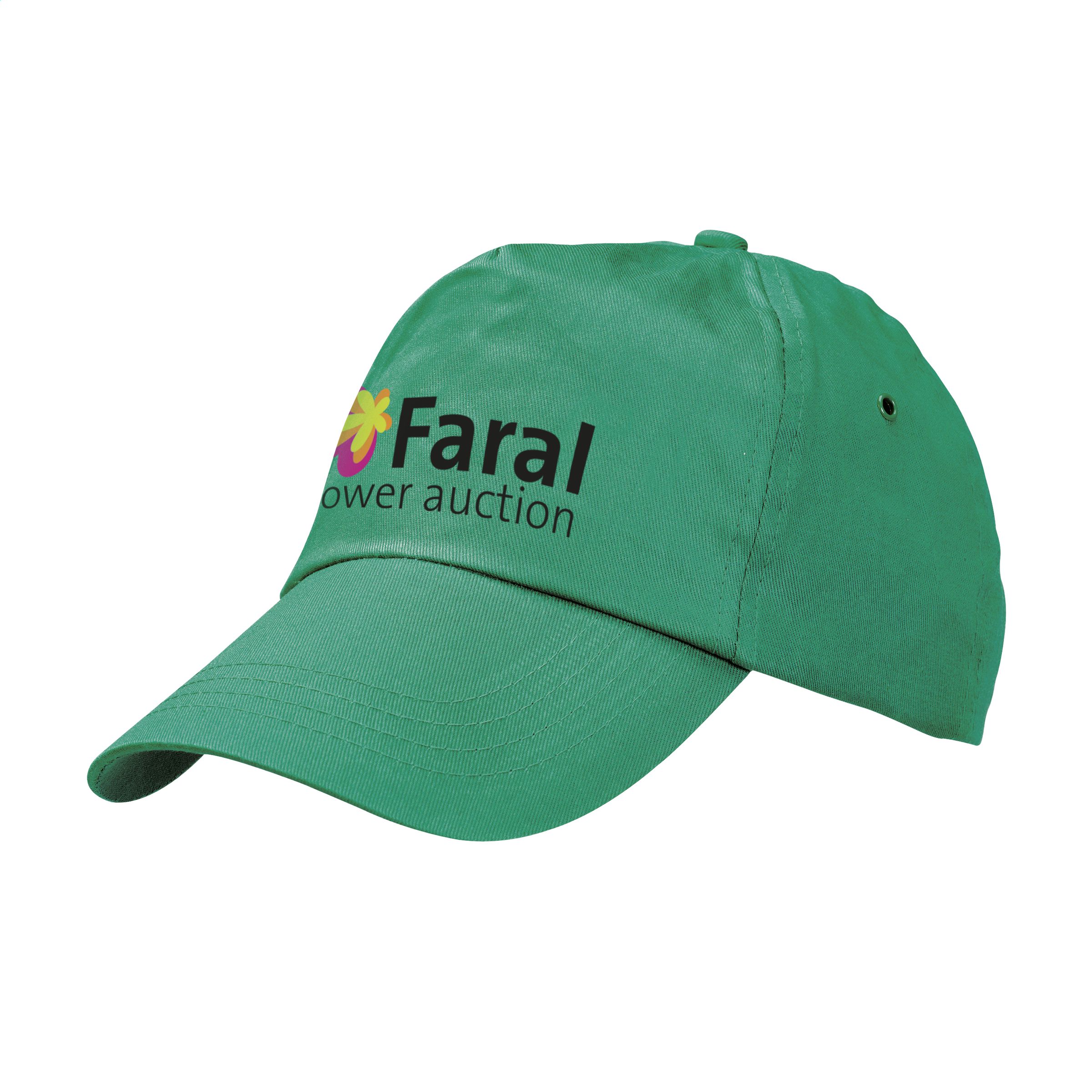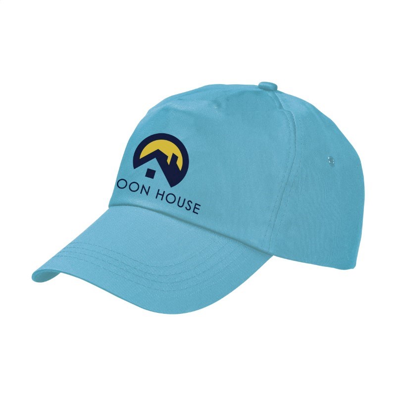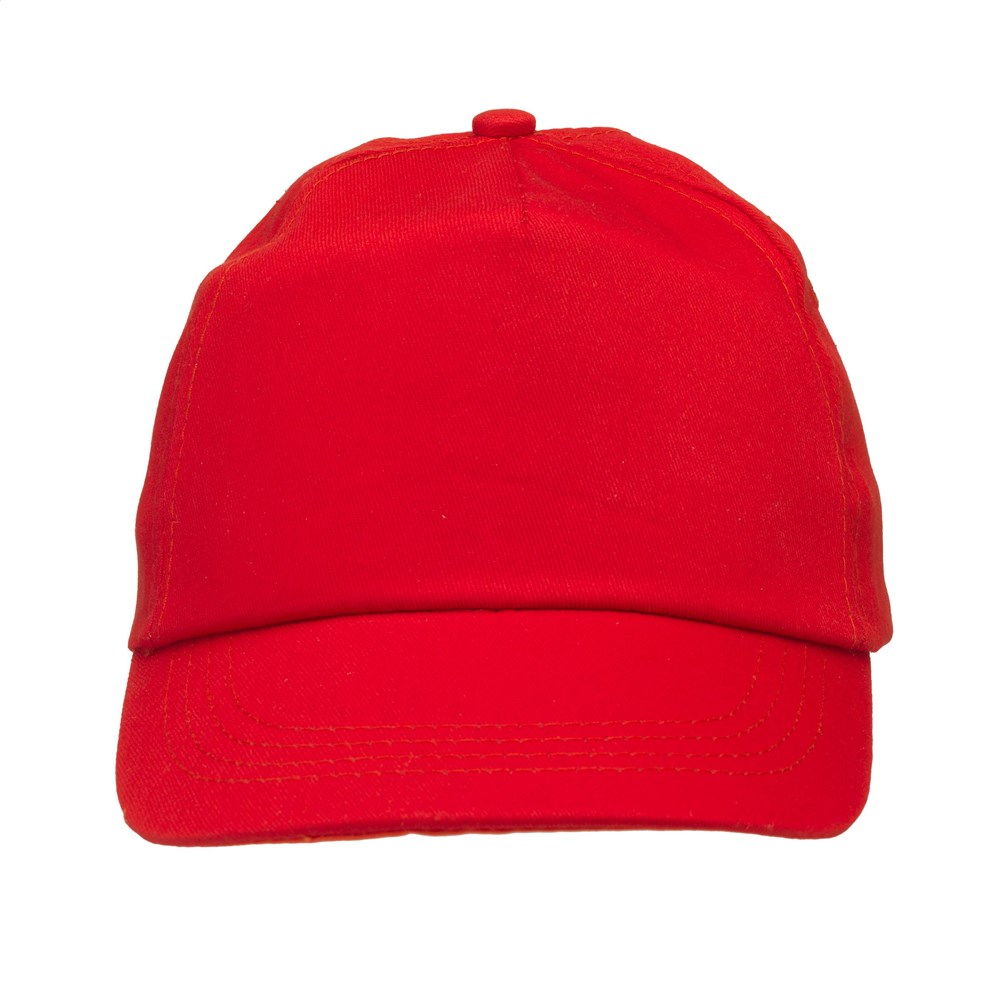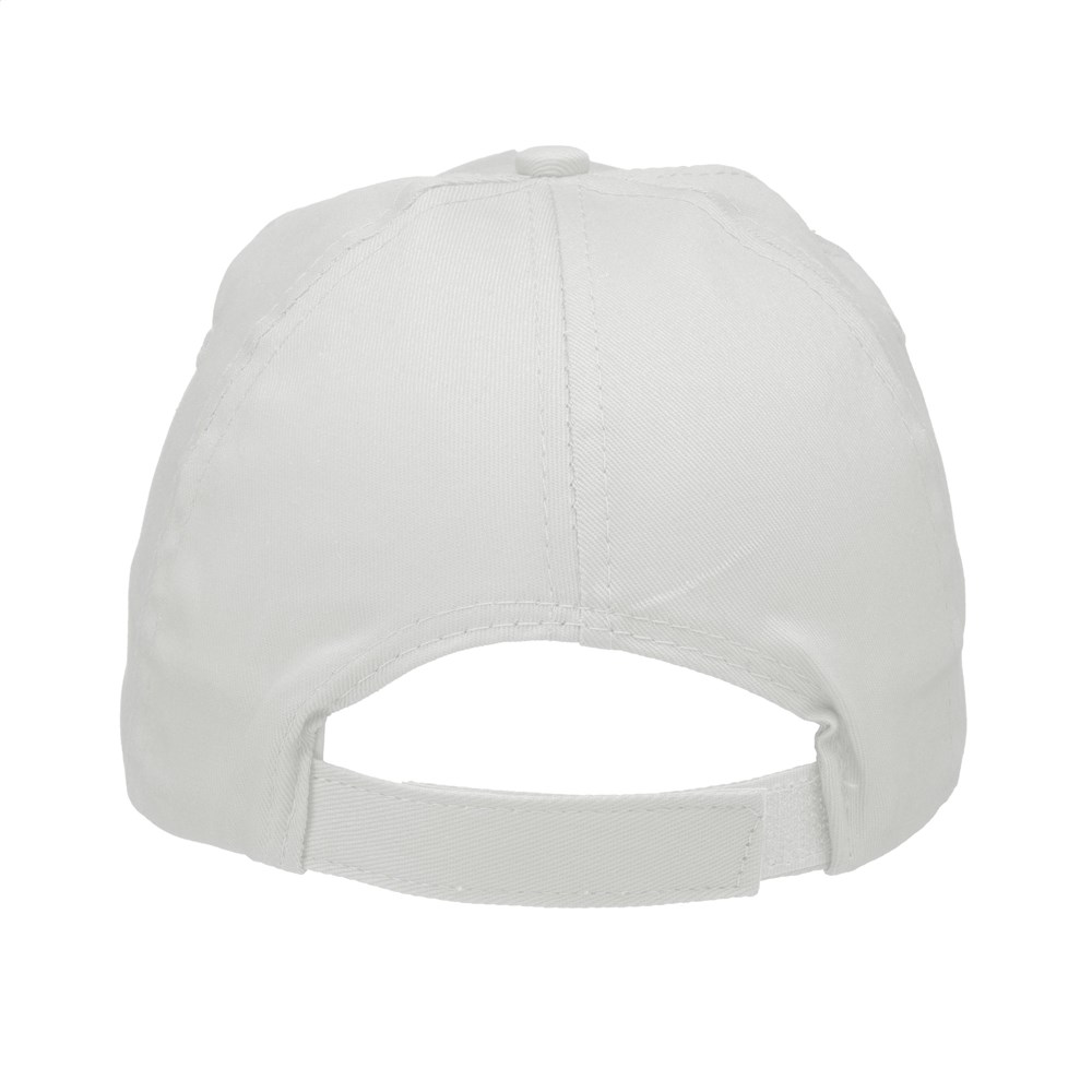 Baseballcap van 100% katoen met voorgevormde klep en klittenbandsluiting.