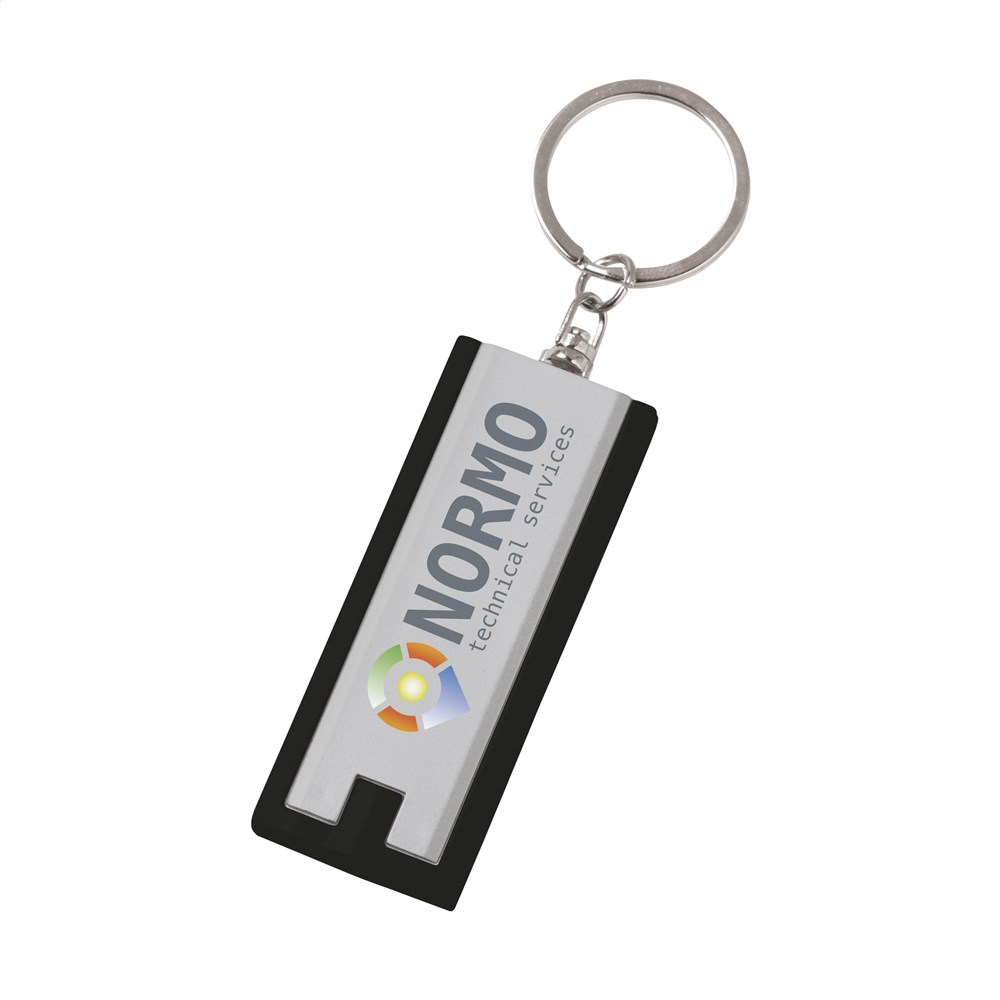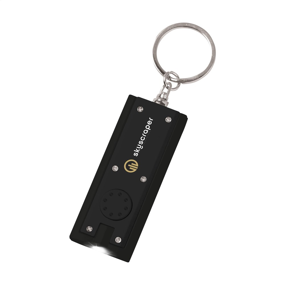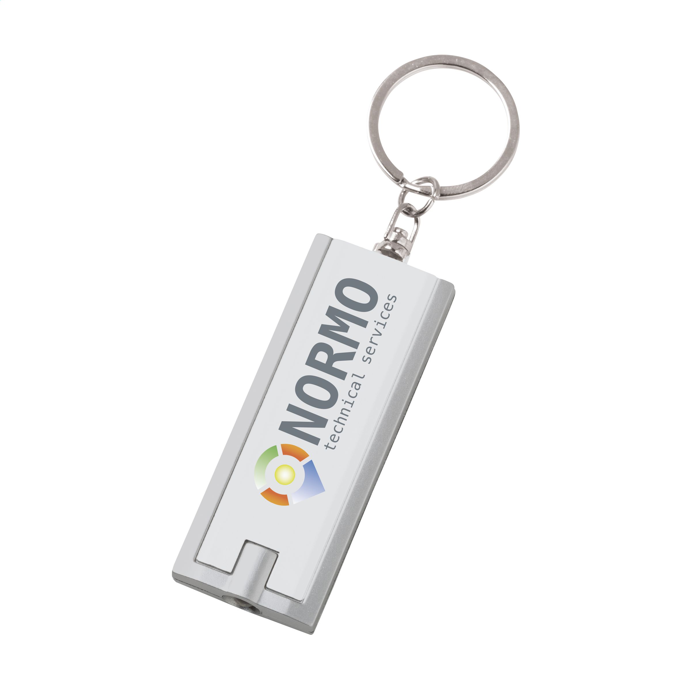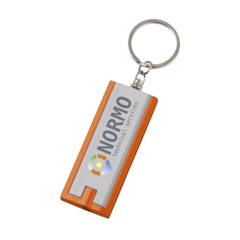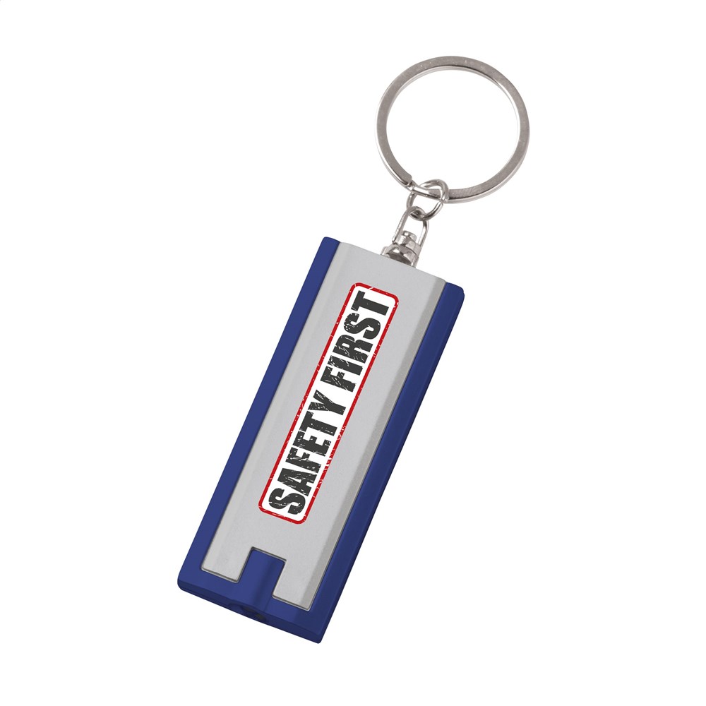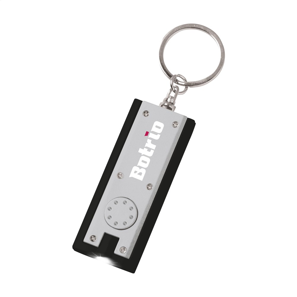 Sleutelhanger met felwit LED-lampje, incl. celbatterijen.