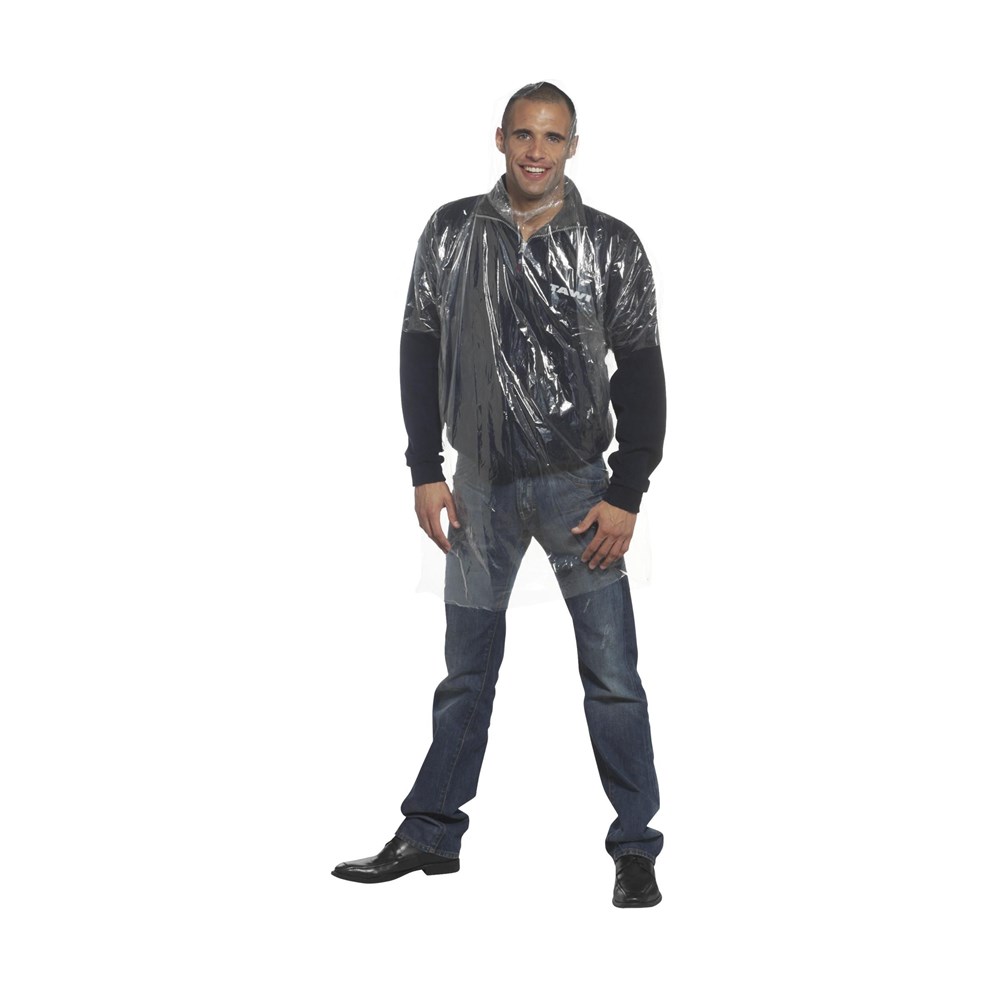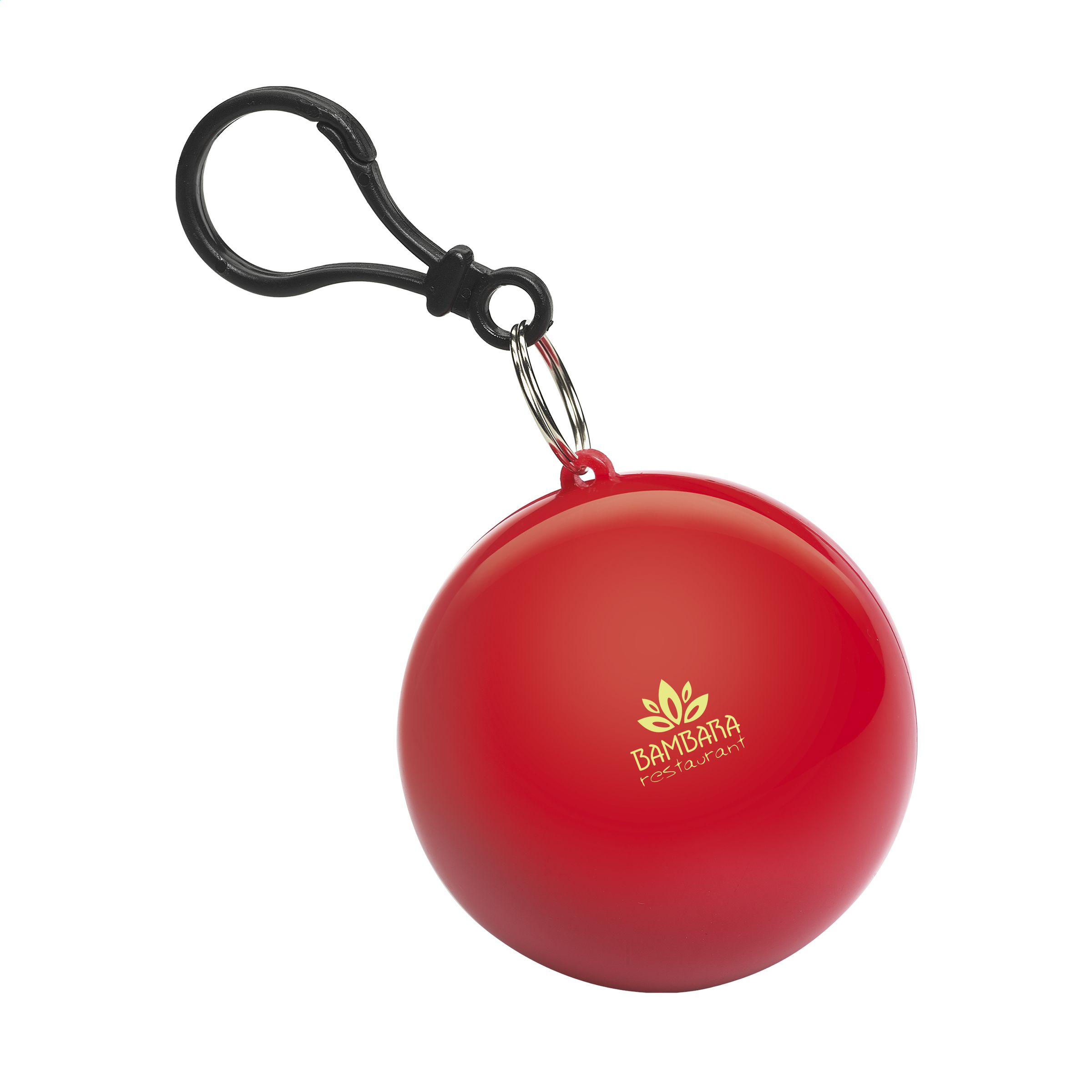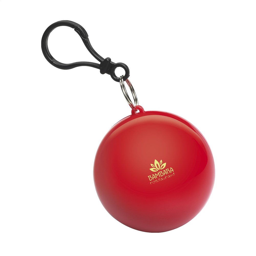 Transparante regenponcho in kunststof bal met karabijnhaak.