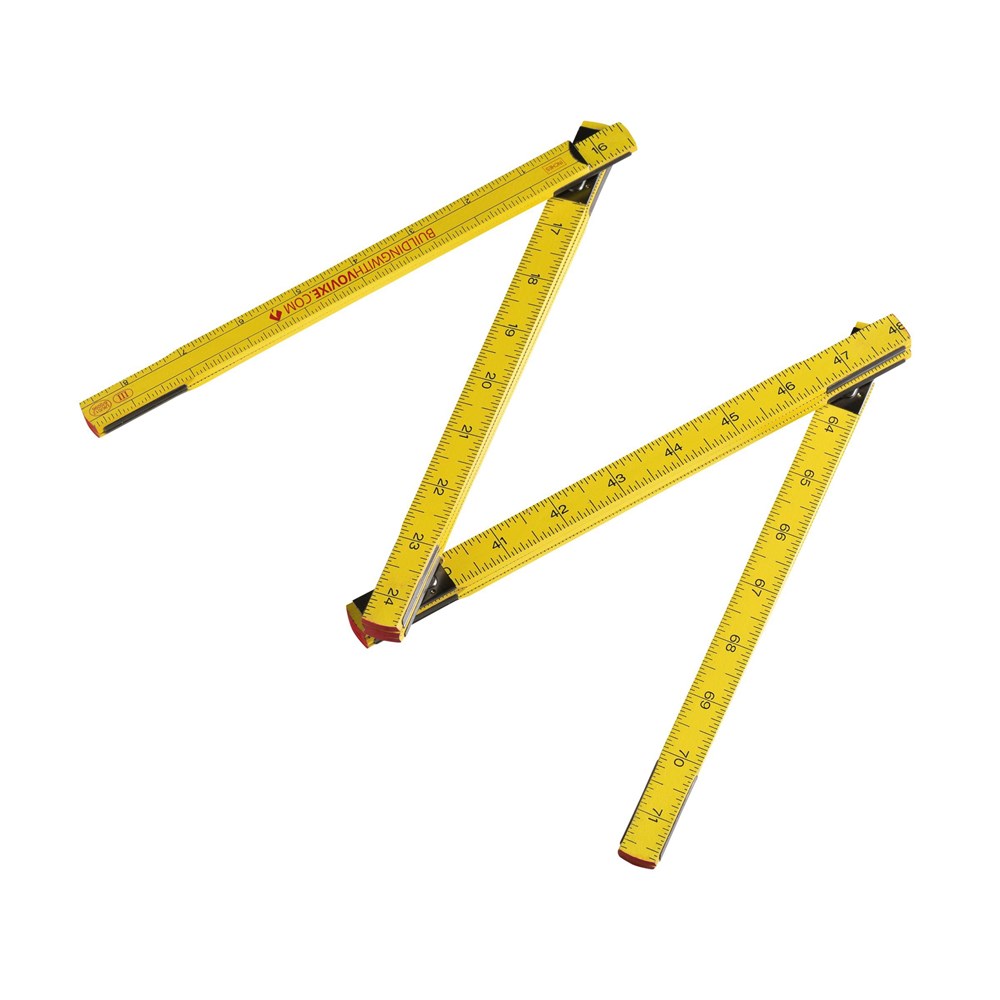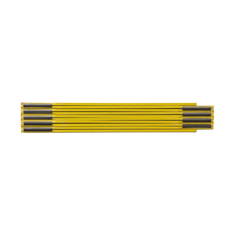 Professionele duimstok van gelakt hout, met een lengte van 2 meter/78 inches. Aanduiding in centimeters aan de ene zijde en inches aan de andere zijde. Geijkt volgens Europese normen.