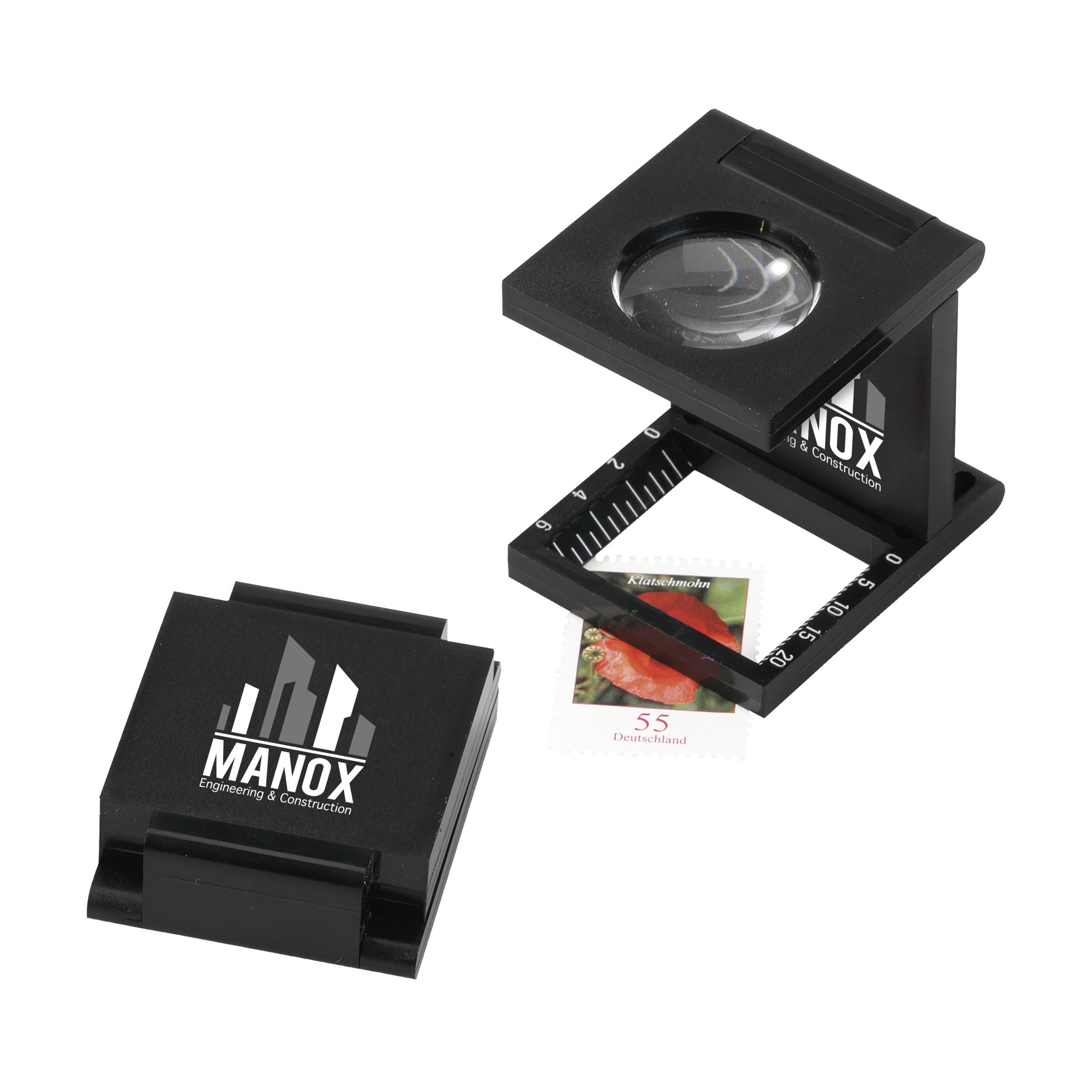 Uitklapbare loep met vergrotingsfactor 8. Per stuk in doosje.