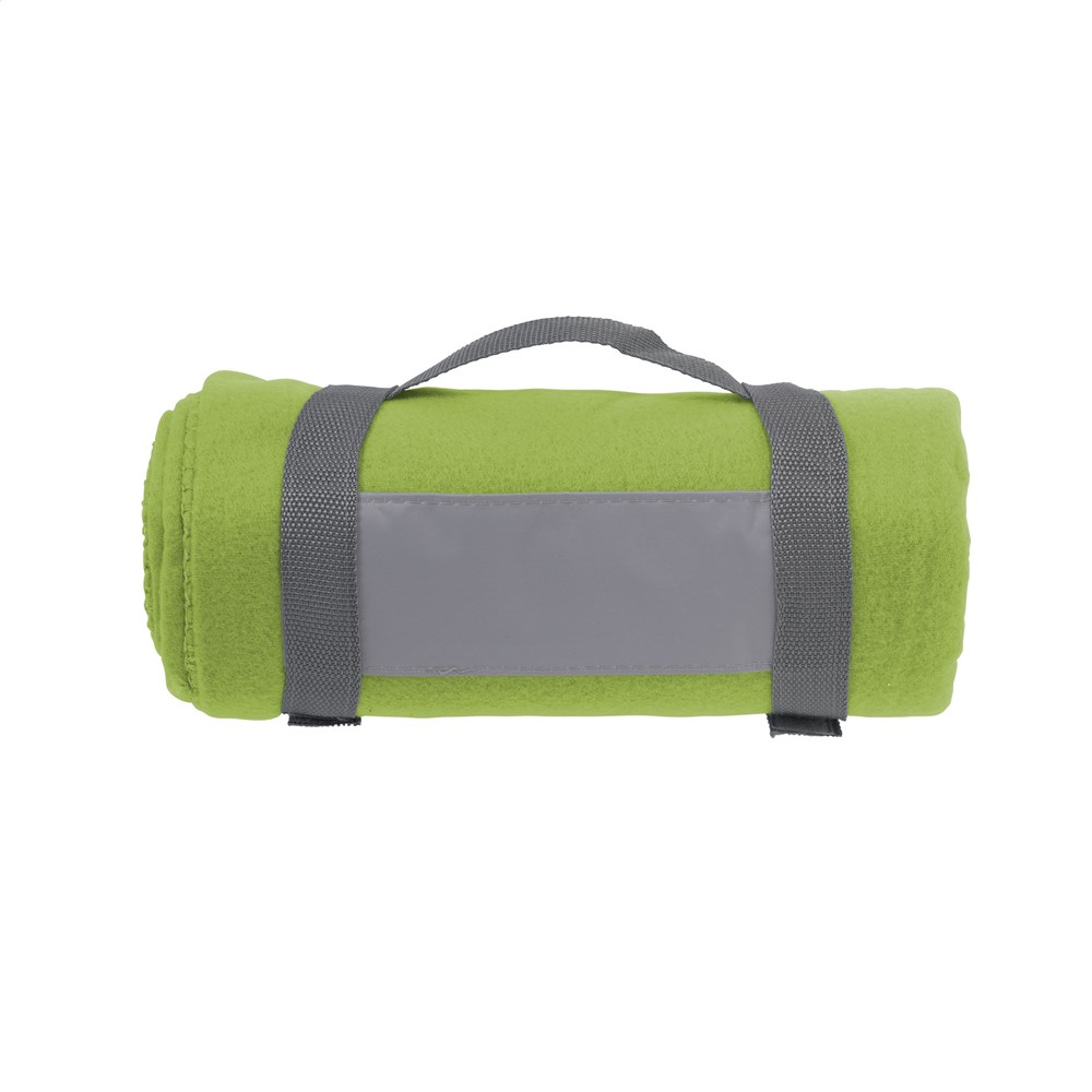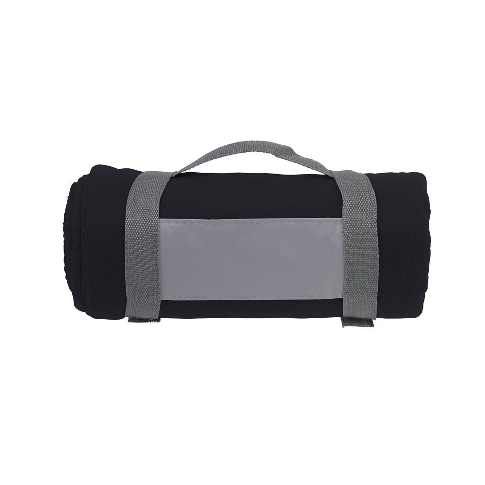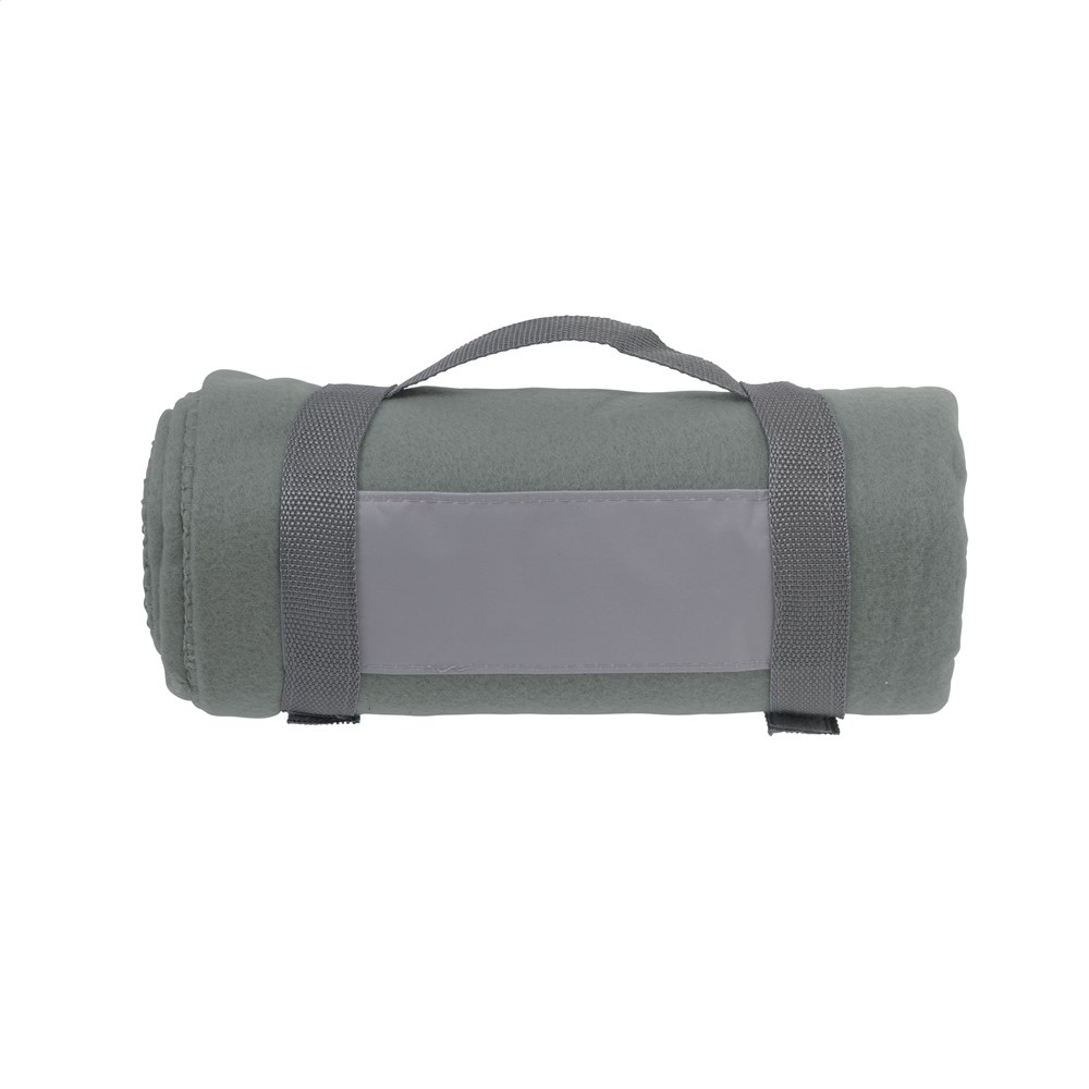 Plaid van 100% fleece (180 g/m²). Afm. 150 x 120 cm.