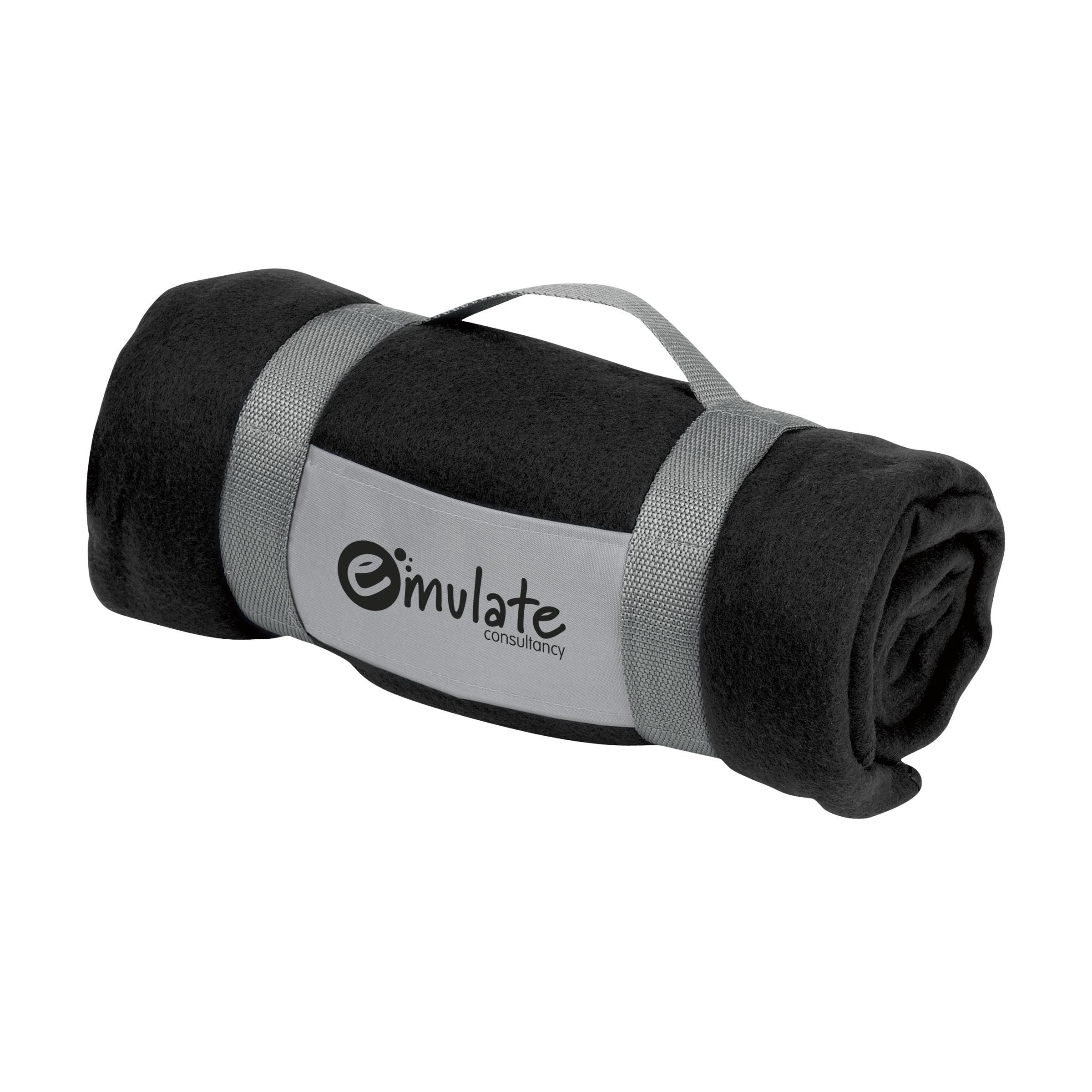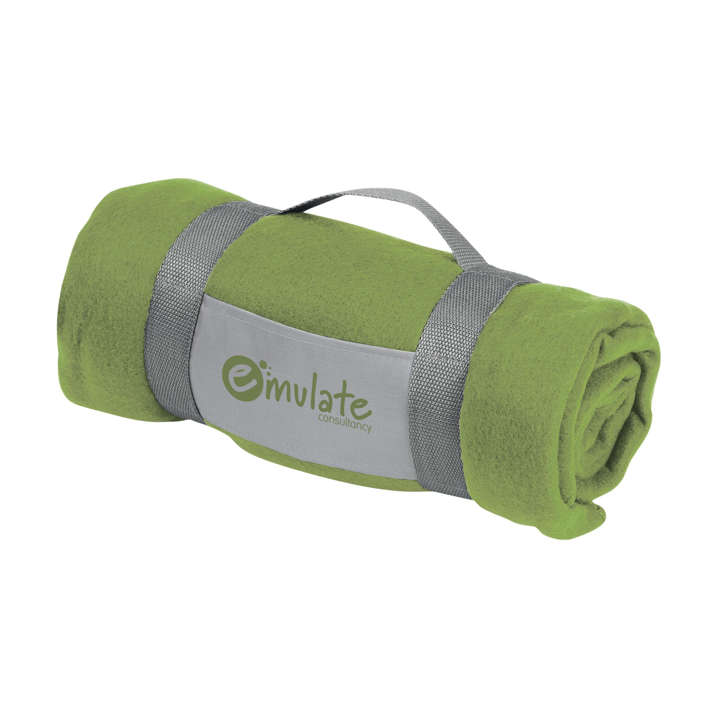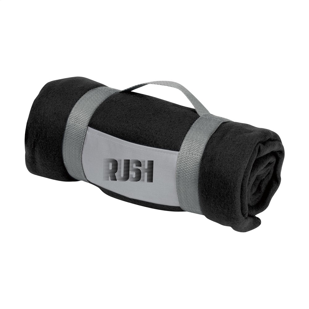 Plaid van 100% fleece (180 g/m²). Afm. 150 x 120 cm.