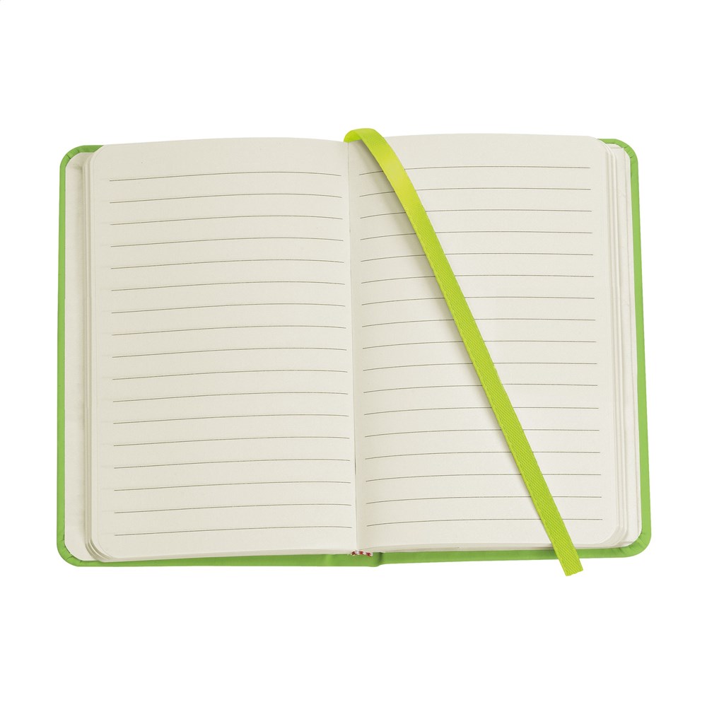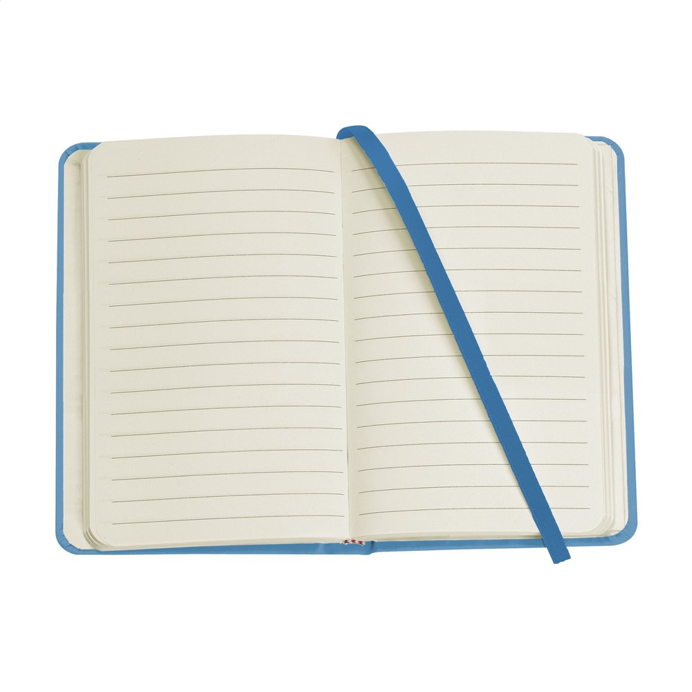 Compact notitieboekje in A6-formaat met ca. 96 vel crèmekleurig, gelinieerd papier (80 g/m²), opbergvak, gebonden rug en harde kaft.