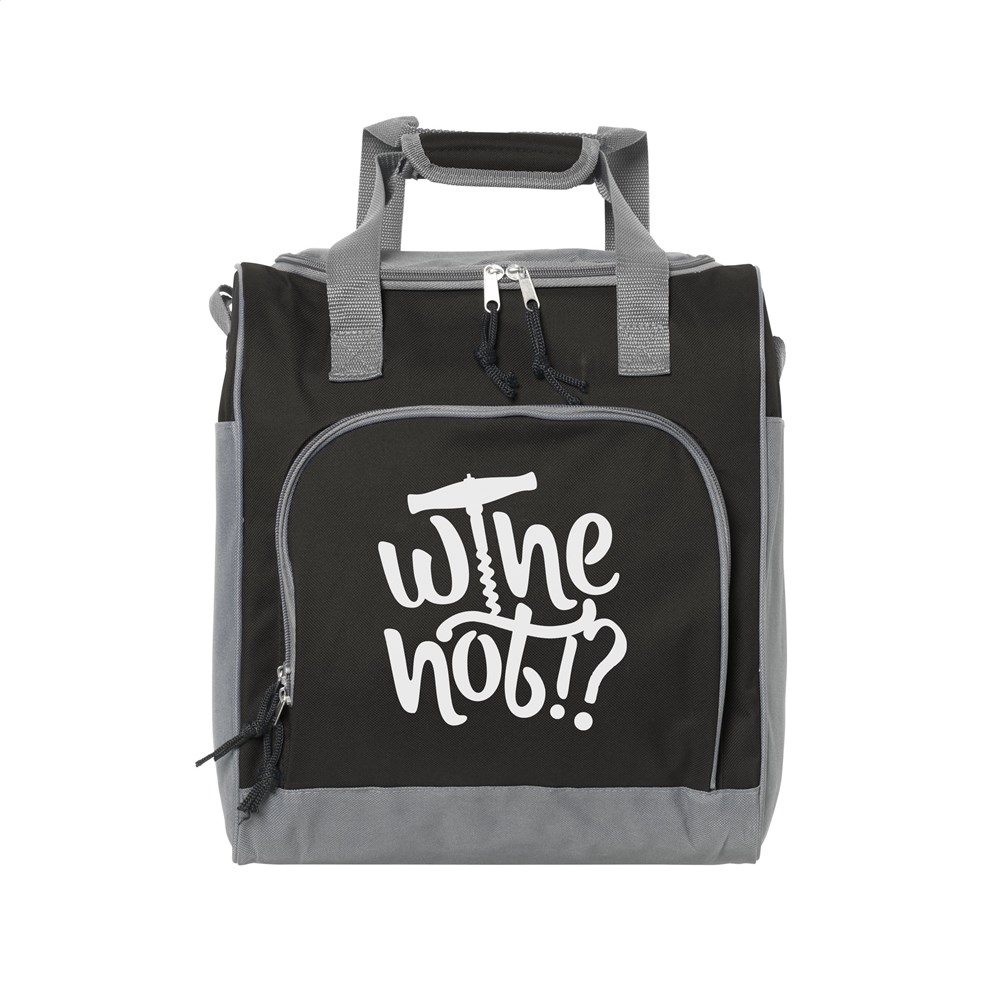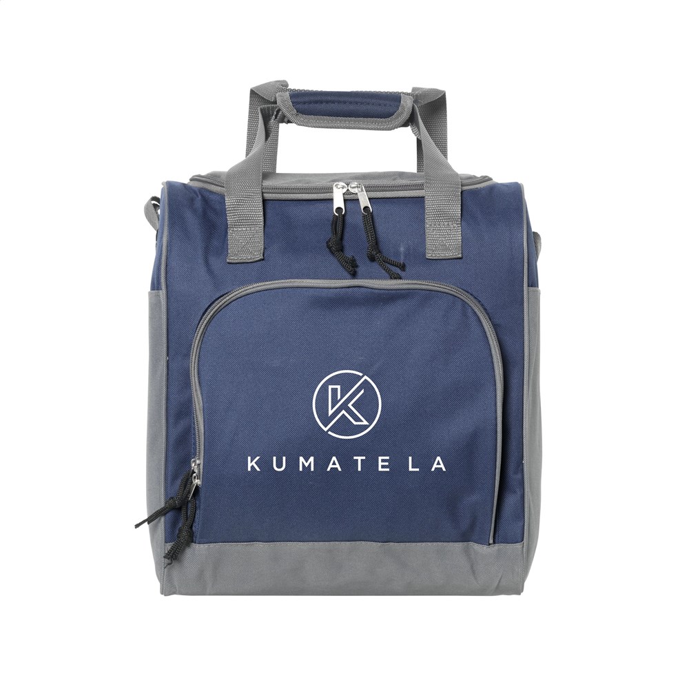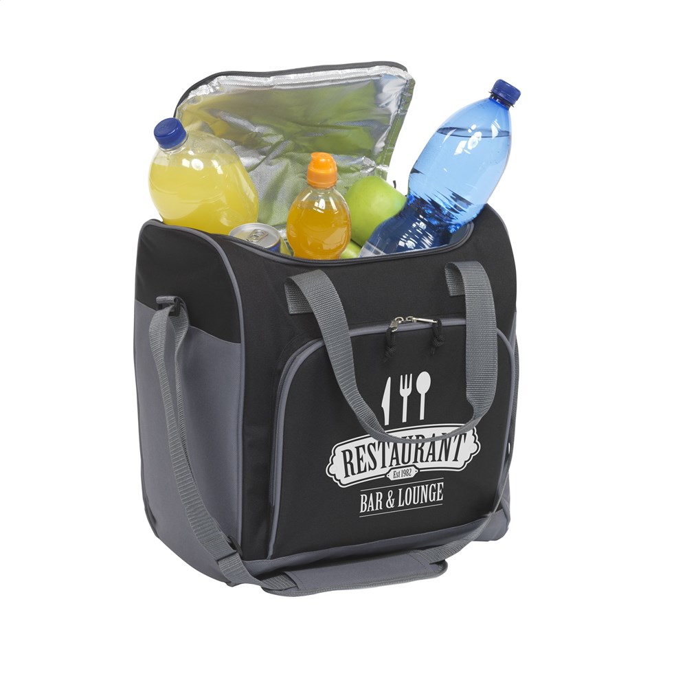 Stevige koeltas van 600D polyester. Met zeer ruim koelvak en ritsvak, verstelbare schouderriem met gewatteerd schouderstuk en 2 handgrepen. Verrassend veel opbergruimte: geschikt voor 6 flessen tot 2 liter.
