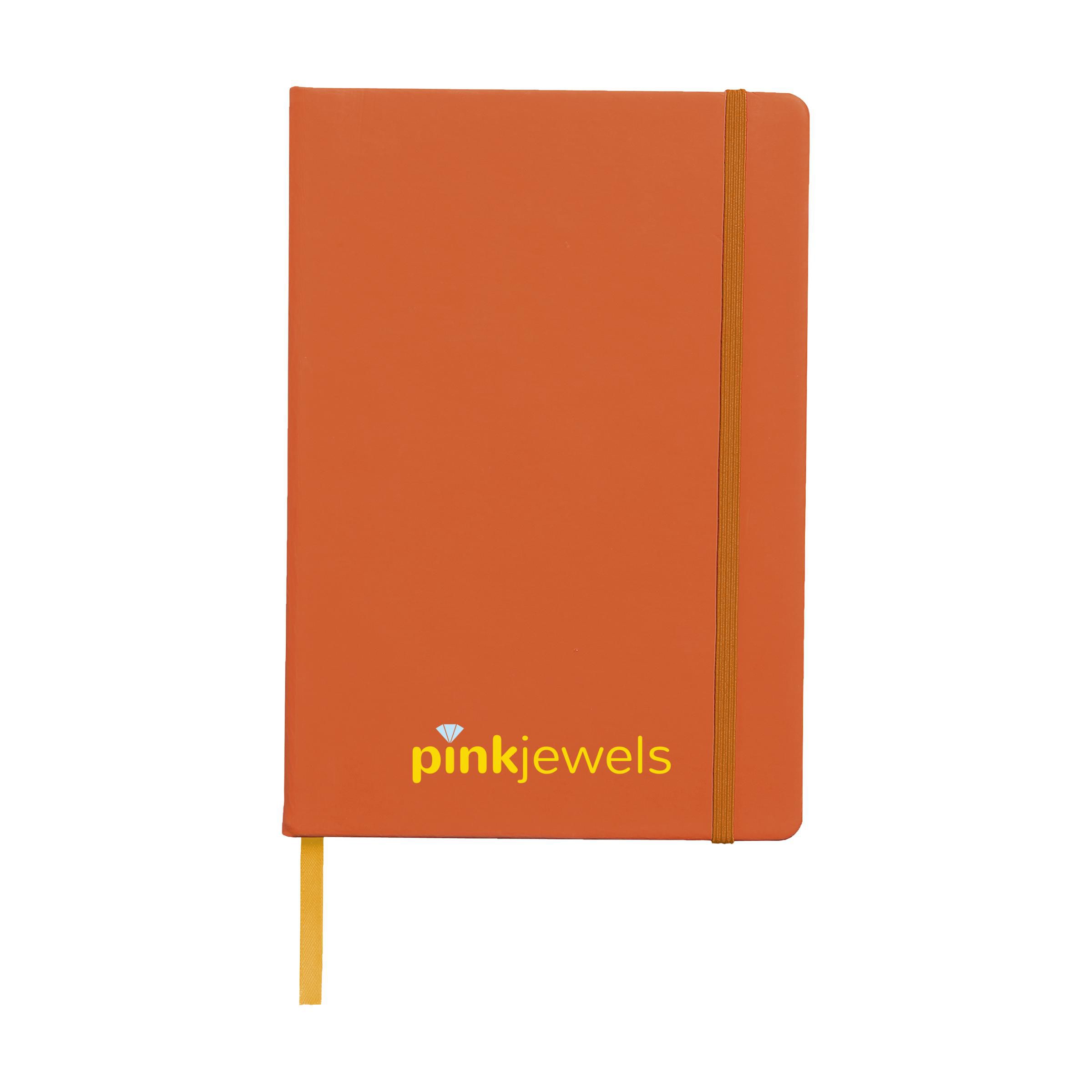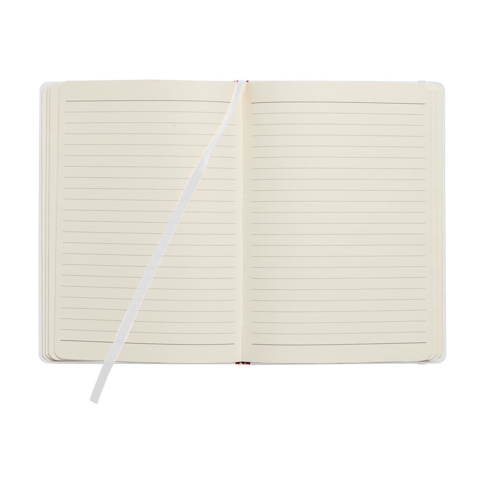 Notitieboek in A4-formaat met ca. 96 vel crèmekleurig, gelinieerd papier (80 g/m²), harde kaft, elastische sluiting, gebonden rug en zijden leeslint.